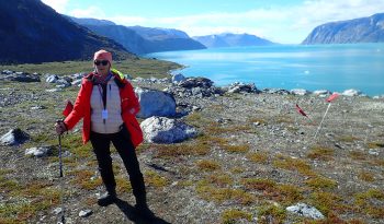Boots on ground Oh, what a glorious day! A leisurely breakfast after Lynne’s yoga session and Peter’s gym session, saw us gingerly making our way up Kvarnefjorden, further up the west coast of Greenland. The sea was calm, and sky