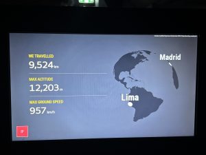After a two hour flight to Madrid, we had an 11 hour 45 minute overnight flight, of 9,524 km, to Lima, arriving at 5.15am, but of course just after midday in Madrid.