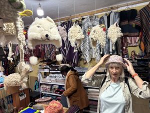 We enjoyed walking along the narrow lanes and up the steps between the whitewashed cottages and shops. Lynne bought an alpaca hat.