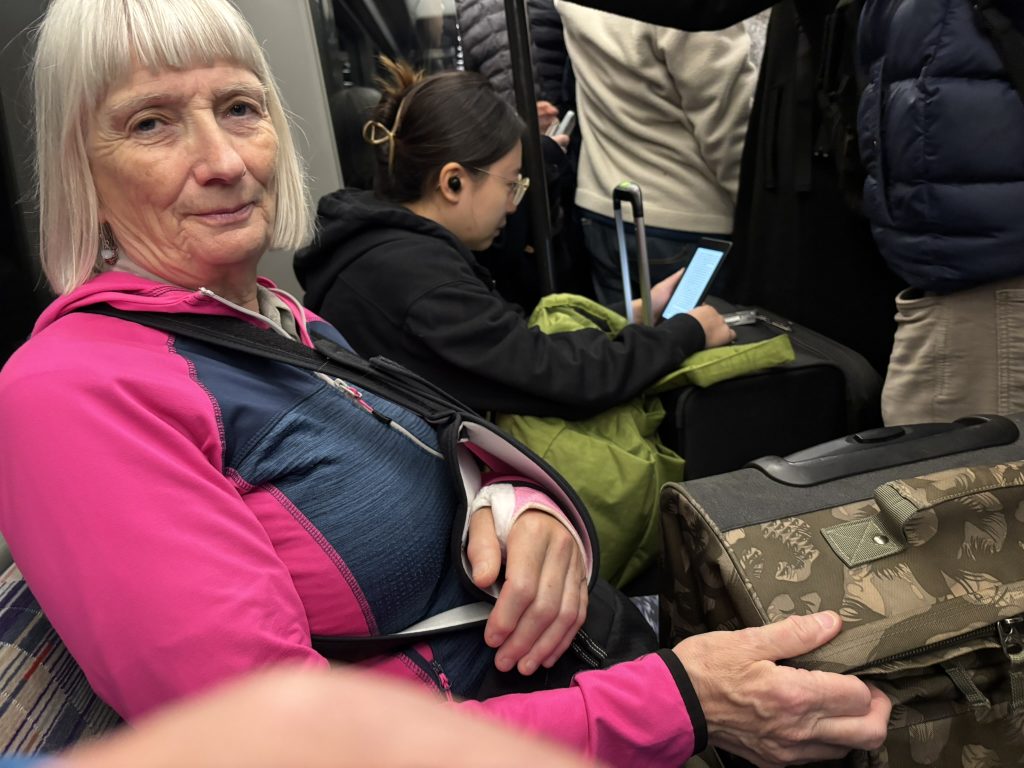 Leaving generously early, we set off to Heathrow Airport on the Elizabeth Line. Geting to the Tottenham Court Road platform in the middle of rush-hour, we were impressed by the frequency and capacity of the Elizabeth Line trains. Despite the crammed carriages, kind passengers noted Lynne’s arm in a sling and first gave up a seat for her, followed by one for Peter.