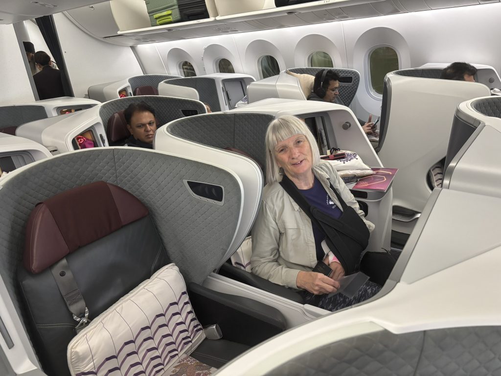 We were also very thankful that we had found the good value business class seats – Lynne’s arm was starting to hurt, and needed the space to rest.