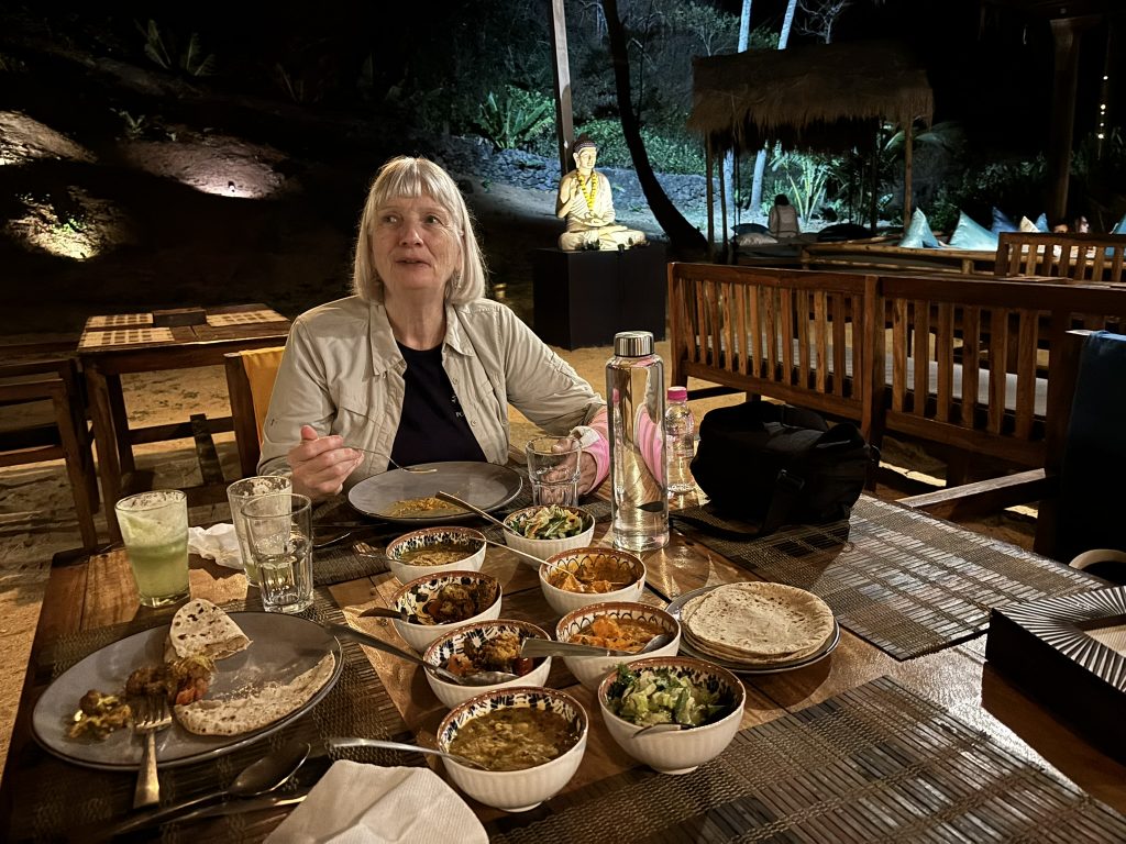 Dumping our bags on the porch of our hut, we were led to a table to be served an amazing dinner. Amazing both because they had stopped serving well before, and also that they cooked everything fresh especially without garlic, for Lynne!