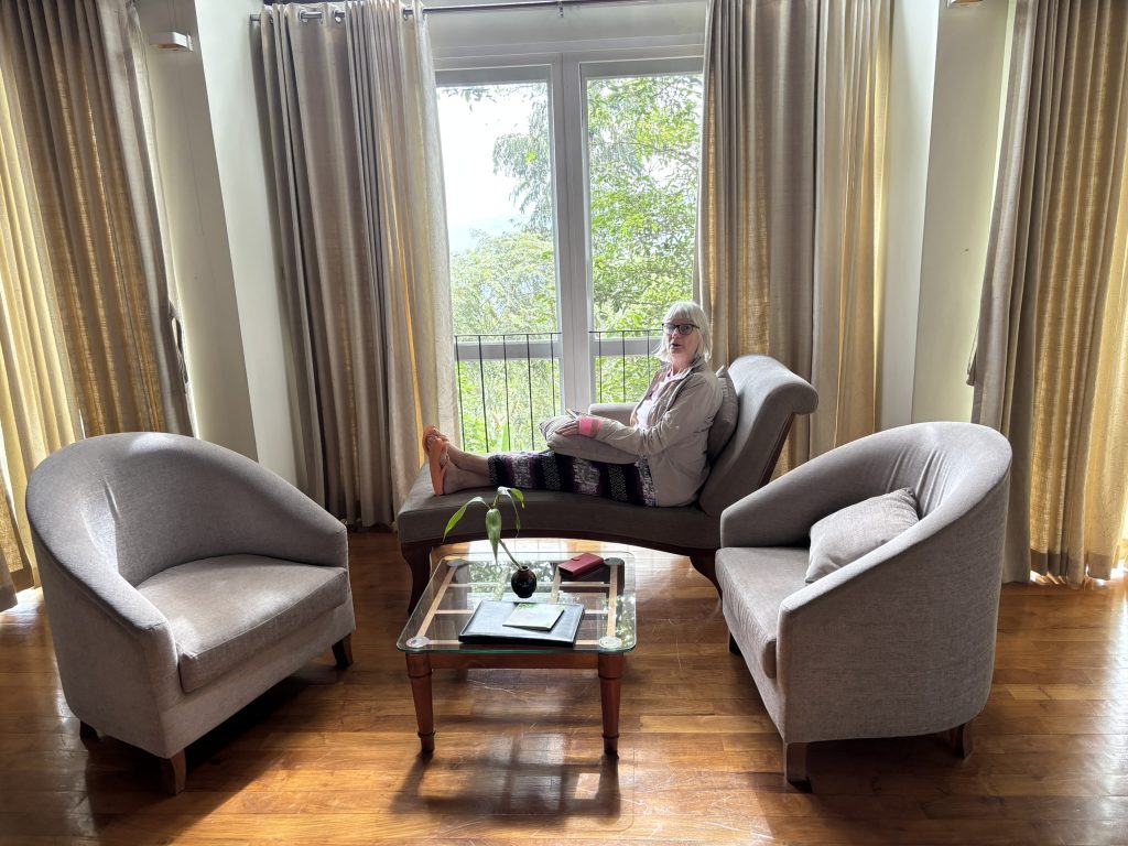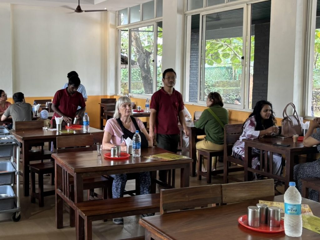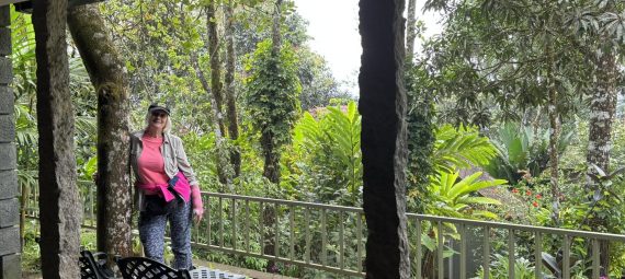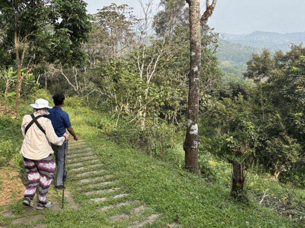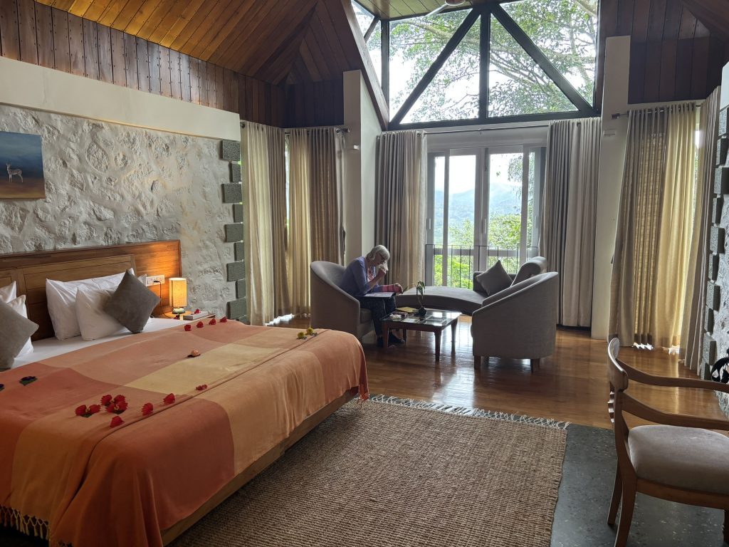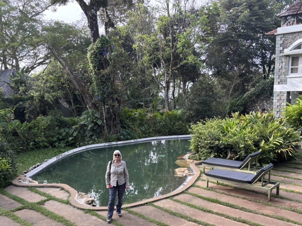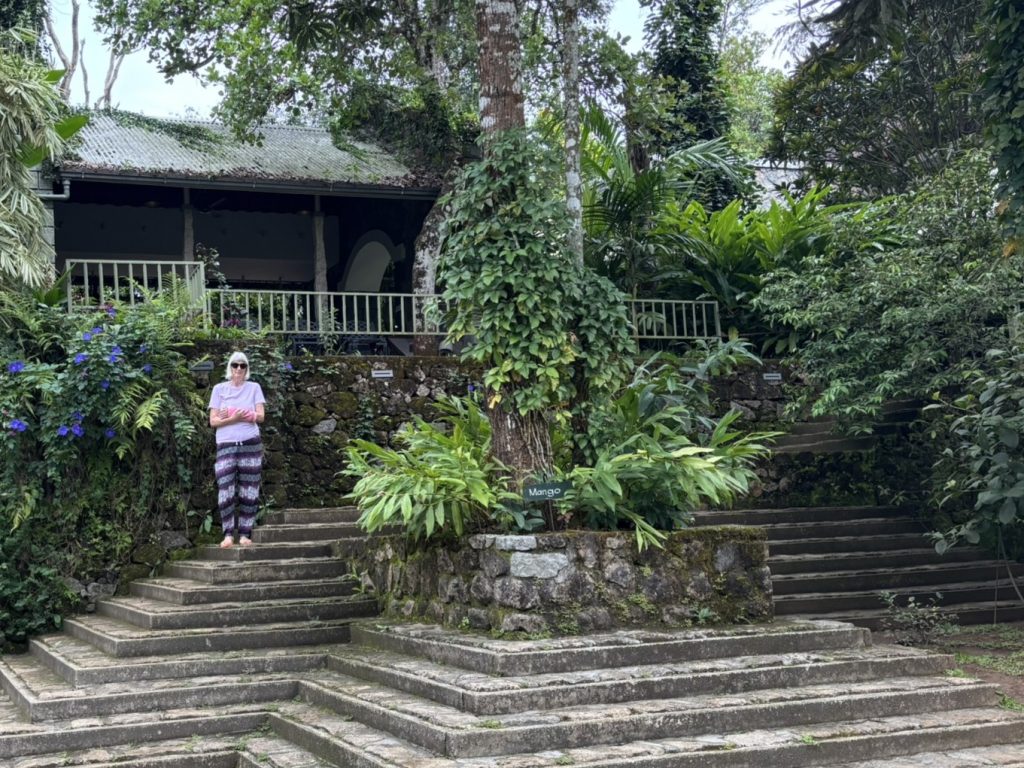 We decided not to drive anywhere the next day, opting to amuse ourselves in the hotel’s environs. For Lynne the day started with yoga, in a large room with fantastic views of Rajakumari and the verdant countryside. Peter indulged in transcendental meditation. Breakfast was outside on the terrace in rather cooler conditions than near the coast.