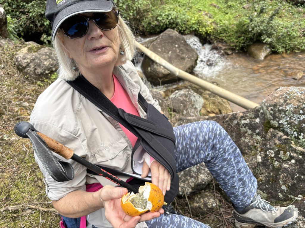Lynne was most uncomfortable as we were obliged to hold on tight in the jeep all the way down. Our guide was excellent in showing us medicinal plants and finding us some local passion fruit. We even had a sandwich lunch!