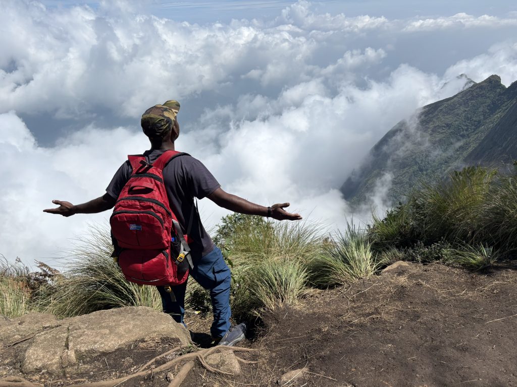 Too soon we were back in the jeep for a very bumpy ride to a viewpoint at Kolukkumalai, at 7120 feet. We were right on the border with the neighbouring state, Tamil Nadu. The weather was different over the ridge, with clouds moving quickly to obscure and then reveal the view.