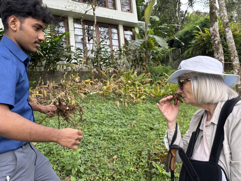 We indulged in a fantastic guided walk around the grounds, testing the variety of spices and seeing the fruits, flowers, dairy cattle, hens and vegetables. Unfortunately we both managed to get some red chilli pepper on our noses which was prickly.