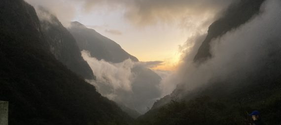It took us five days to get to our highest point, through jungle, forests of rhododendron or bamboo and scrubland above the clouds. It was sweltering in the sunshine during the day and literally freezing at night. We encountered cattle, sheep, horses, mules and dogs on the trail, and langur monkeys beside it. I had a particularly close encounter with a cow, a mule and unfortunately a leech!