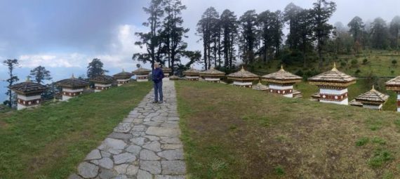 We drove high up in the mountains and went through the Dochu La Pass twice, with its 108 chortens, to commemorate the loss of life in dealing with terrorists from Assam. The first time the mists gave it a magical air. The second time, the blue skies afforded us magnificent views of the snow-capped Eastern Himalayas.