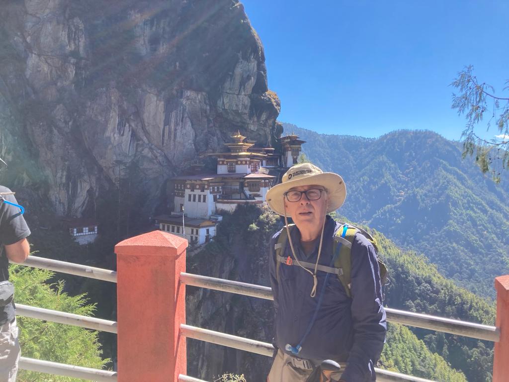 But nowhere compares to Takshang, the Tiger’s Nest, nestling high up, clinging to the cliff edge, with its steep staircase approach, hanging out over the precipice. We climbed 820 metres (2,700 feet) to reach it. It was built in the 16th century, but renovated after a fire in 1998: an awesome experience.
