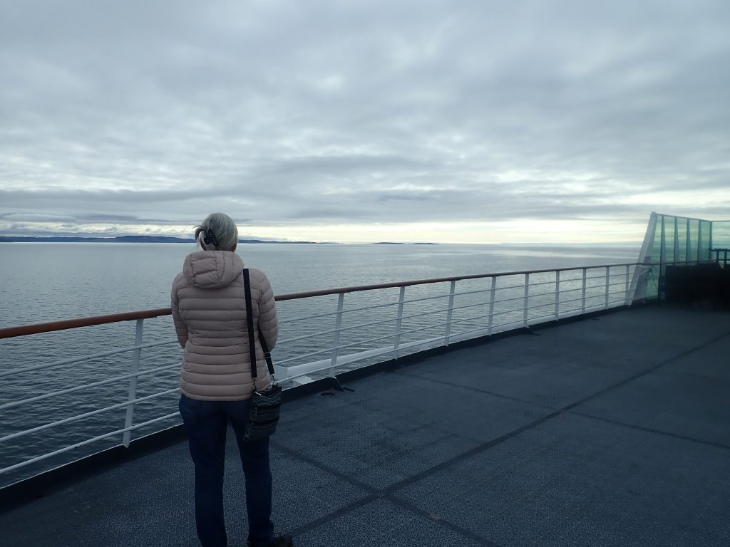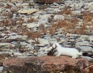 We enjoyed the trek over very rough stones to a high spot to view the scenery. A surprising additional exercise, after our early morning gym session. We also saw the fur remains of an Arctic fox and a snowy white stoat carrying fish to its lair.
