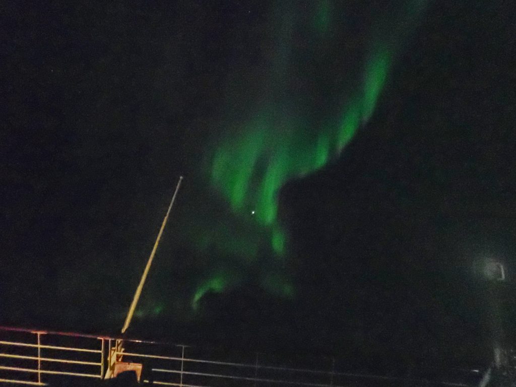 Retreating to our cabins, the staircase burst into activity with excited exclamations “…northern lights…!” Rushing out, we rushed back in shortly after, as there wasn’t much to see, but more importantly, it was freezing and we were only dressed for (indoor) lounging…