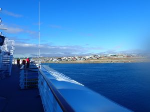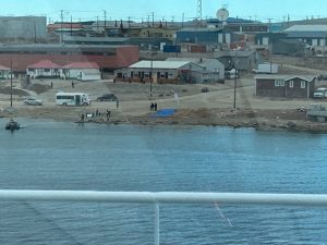 A certain nervousness began to take hold of the passengers in the dining room over breakfast. Would the incoming planes be able to land at the small airport at Cambridge Bay? Disembarkation was supposed to commence for Group A at 8.30 am. Our disembarkation was due at 10.15 as part of the final group for a flight at 14.10, but we had to vacate our cabin at 8am.