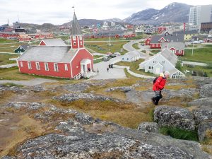 At 18,800 inhabitants, Nuuk contains one third of Greenland’s population and is a mixture of traditional (charming) and modern (not so charming) buildings. Among the charming buildings, the Cathedral was like a dream – small, neat and with red painted wooden cladding. As Nuuk has this cathedral, according to British custom, it should be accredited the title ‘City’, not ‘village’ as my cheeky heading suggests. Among the not so charming buildings were modern apartment blocks that could have been found in any western town.