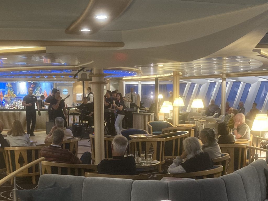 After dinner, some of the crew transformed themselves into the “ Seasick Band” to entertain the passengers; the dance floor moved to the rhythm of the music, the sea and the dancing of the passengers: really heartening.