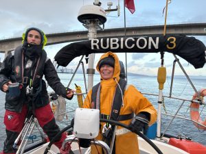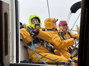 Despite the gales forecast, the first part of the passage was dry, but windy and bumpy. Peter’s watch agreed that the weather was more ‘spicy’ than ‘fruity’, like the crossing from Iceland. With all three sails up it was exhilarating, if a little terrifying, racing across the ocean with no other craft, not even Hummingbird, in sight. It was reassuring to know that Bluejay has already sailed around the world four times so that whilst some of us might be new to this, our yacht was not.