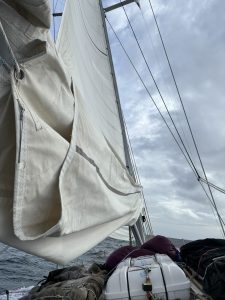 We departed the seas off Torshavn at 4pm, after completing our wet MOB drill in record time and hoisting the sails for the long leg to Scotland.