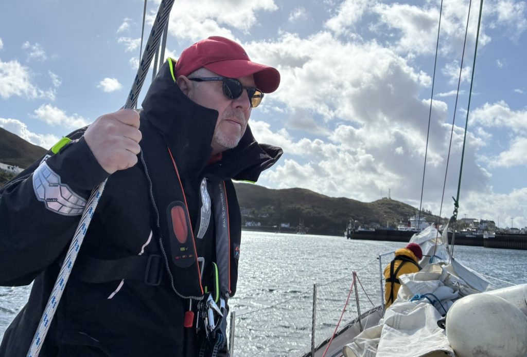 On Peter’s, Andrew’s and Bill’s watch, we were quite emotional passing the incredible Northwestern coastline, especially our Scottish shipmate Andrew. Peter had thoughtfully,  before leaving London, downloaded the album Highland Cathedral – one of the finest of Scottish bagpipes, played by the Royal Scots Dragoon Guards. He played it on a Bluetooth speaker on deck (thank you Neil). Andrew, on the helm, was nearly brought to tears with emotion, and Peter wasn’t far behind. Bill, from the US, wanted to play Jerry Lee Lewis, but Peter demurred, as it didn’t quite fit the moment.