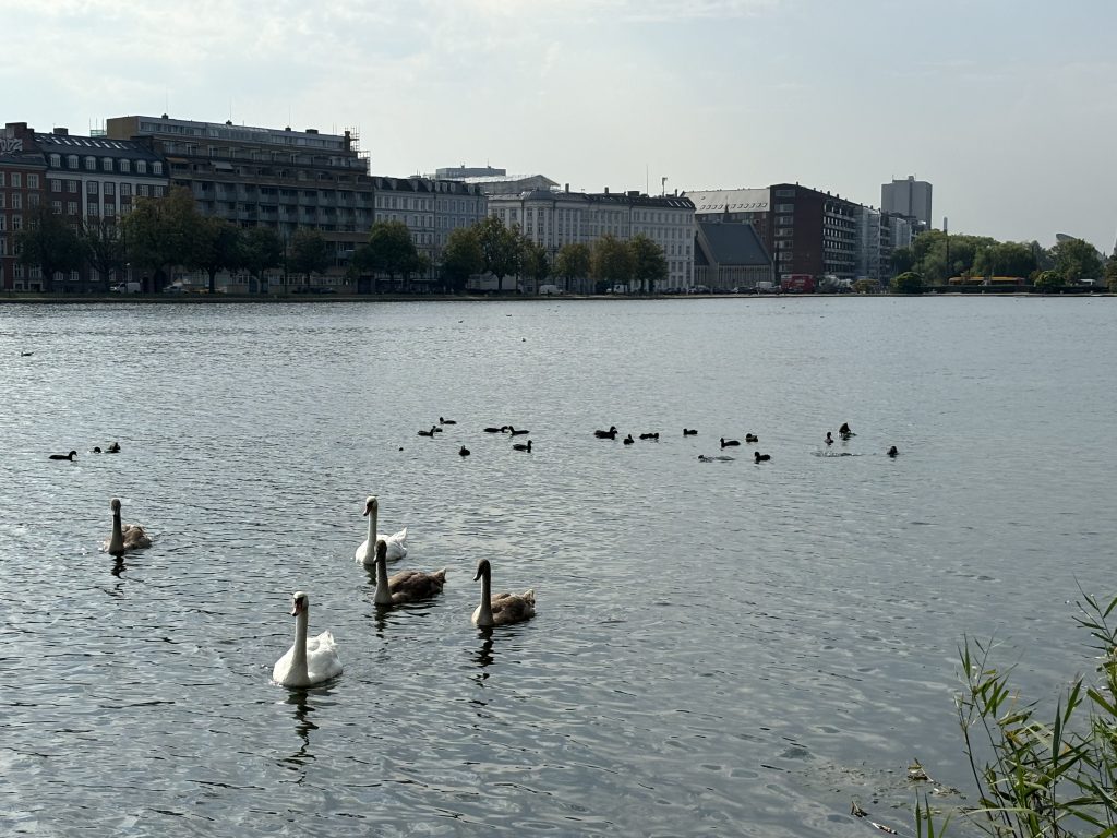 Our training programme prescribed a 5km run in Copenhagen. We decided to run on the paths around the five small lakes in downtown Copenhagen and then find breakfast. Lynne struggled with her warm-up routine, so she enjoyed a bracing walk, while Peter got his kilometres in on the pedestrian paths encircling these interconnected lakes, popular with runners and a host of birds, including swan couples with their ‘ugly ducklings’.