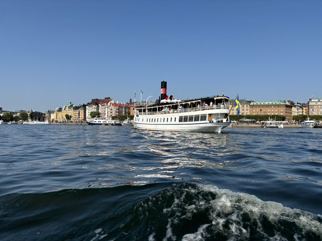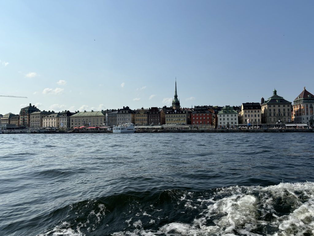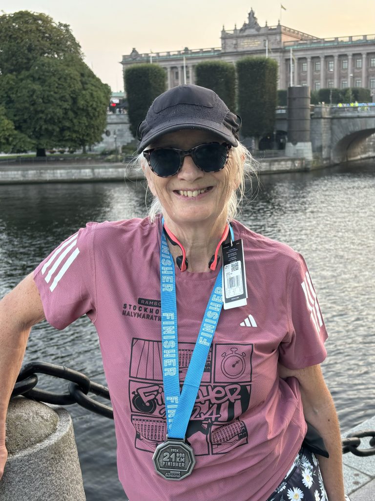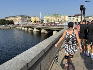 The vibe was great; lots of music, people cheering encouragement and great service at the refreshment stations, although we tried to avoid the water showers. This was normal running temperature for us in the South of France! The city was beautiful, with the Royal Palace, the grand Parliament building, the Royal Opera House, the Grand Hotel and Stadshuset, City Hall and of course, the waterfront.
