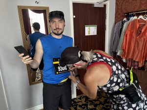 We had carefully planned our morning to eat and drink proper and timely nutrition before the race. However Chris’s sleep suffered from poorly-closing curtains, with light from across the alleyway shining in his face, making for a disturbed night.