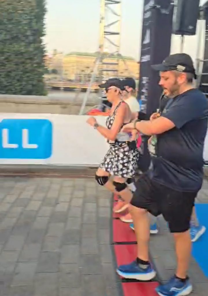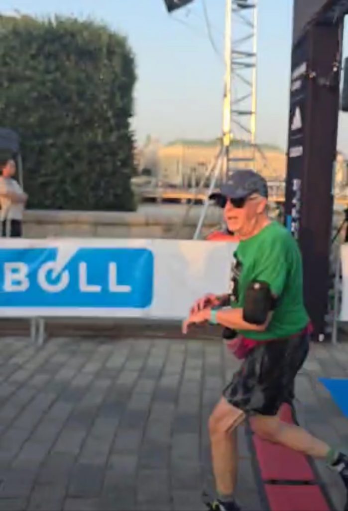 We all three met up at the finish line, where Chris posted a brilliant time of 1 hour 47 minutes (he was aiming for 1 hour 50 minutes), while we arrived within 7 minutes of each other, in Lynne’s case a full hour after Chris. But she didn’t miss the cut-off times and we all felt exhilarated to have done it. Lynne and Peter more so when we factored in the 1% formula, which meant we attained equivalent times to a younger person of 2 hours 9 minutes and 2 hours 2 minutes!