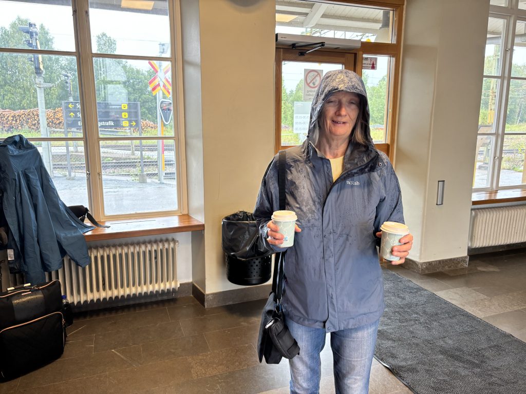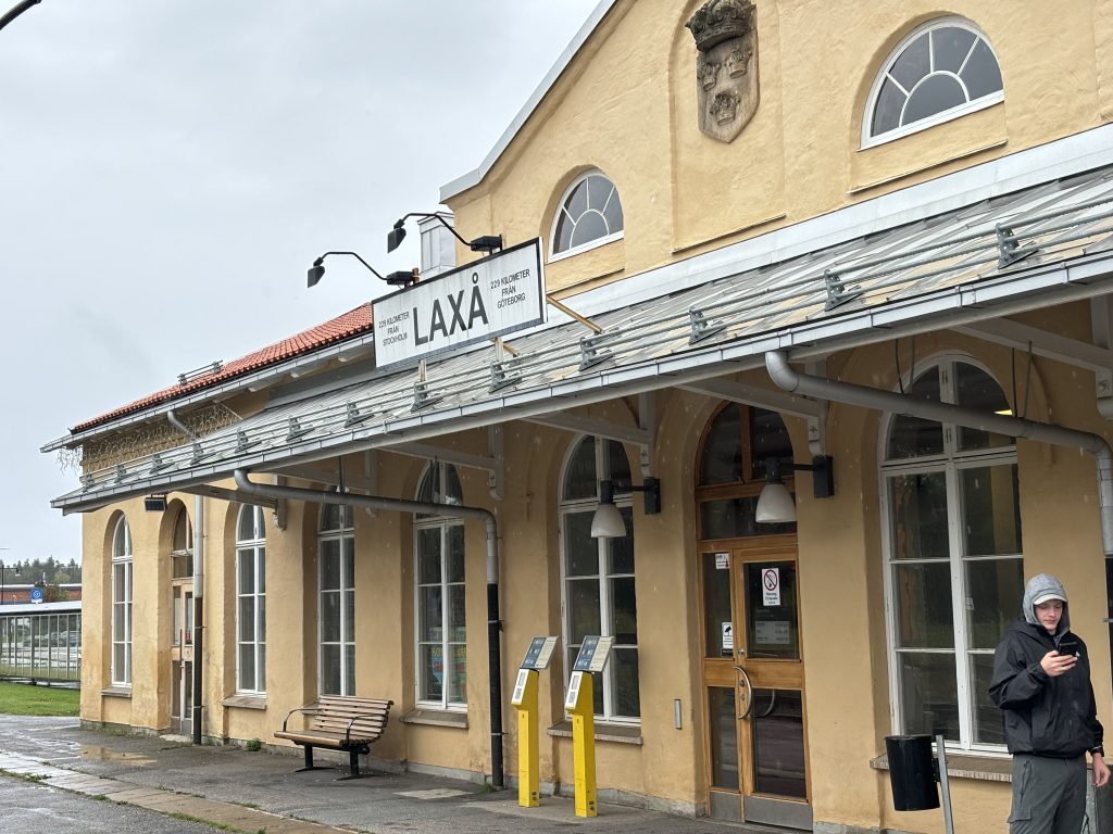 Laxå, where we alighted, is a tiny station with three platforms, a level-crossing and no facilities (except toilets, where only the disabled toilet was free!). Since we had almost an hour to wait, Lynne went up the main street of Laxå in search of coffee. She availed herself of the only place selling coffee, which was the florist!