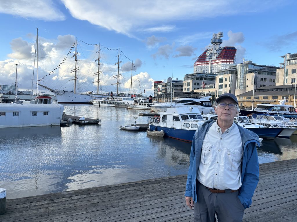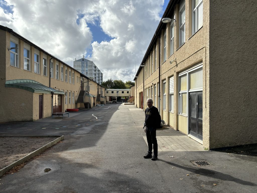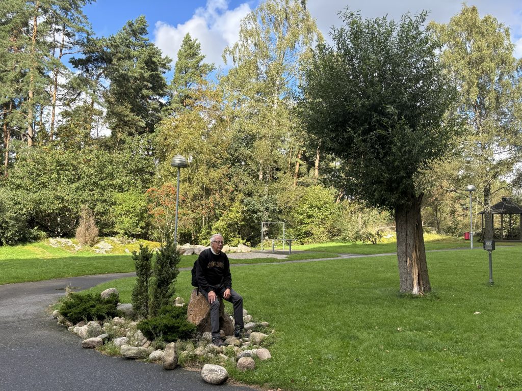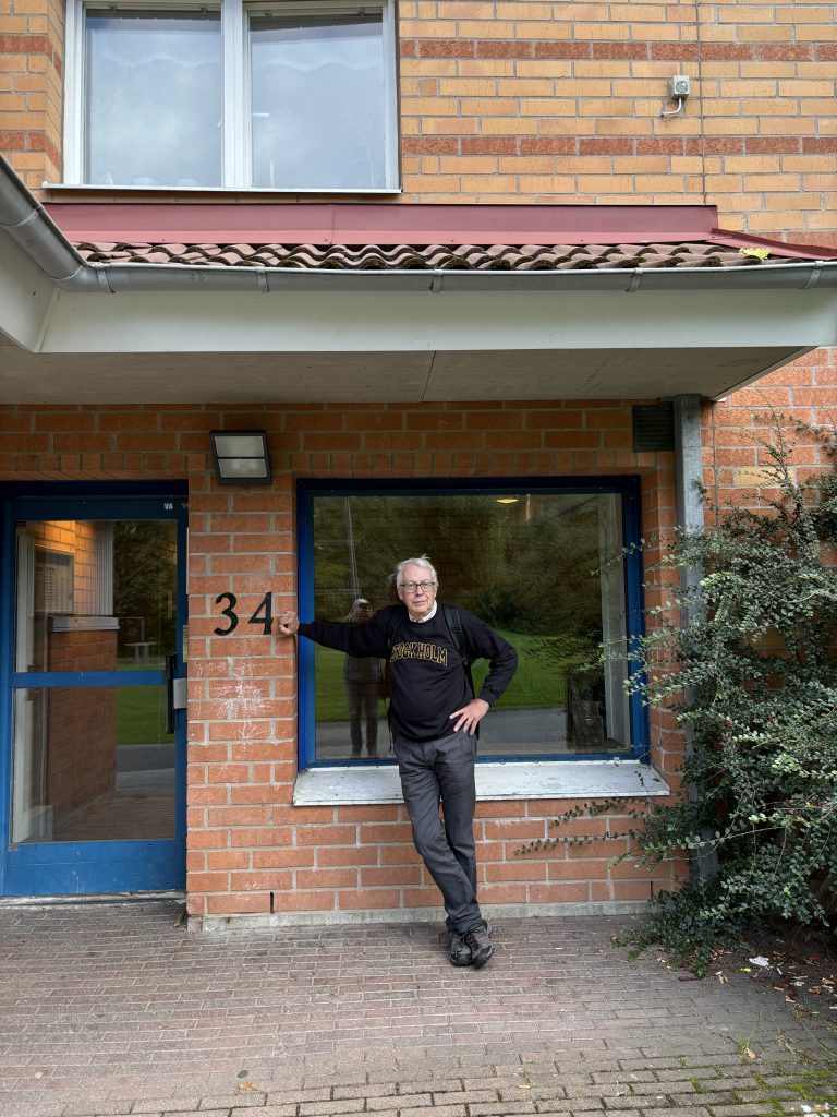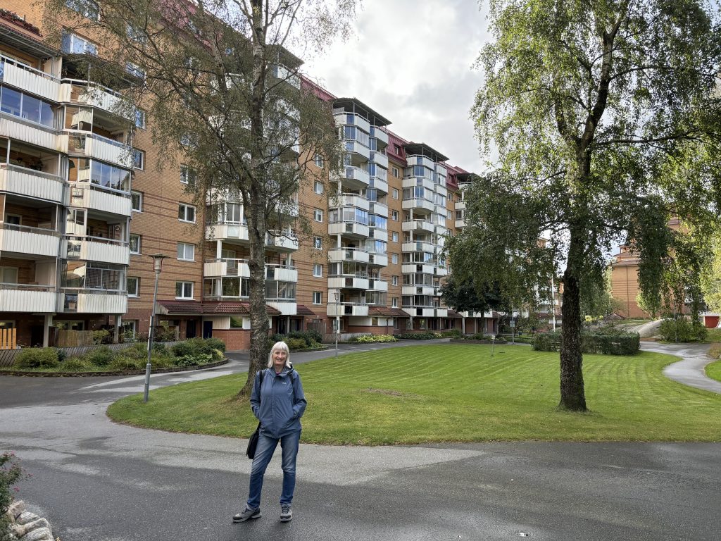 We strolled through the neighbourhood and through Sjumilaskolan, one of the schools he attended for three years. It hadn’t changed much at all, delightful in the sunshine. If anything, the whole area was nicer than remembered. The building Peter lived in has new balconies on one side of the building, and the grounds had lovely, newly mowed grass.