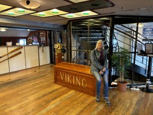 Our cabin was spacious, but rather tired with a grand wicker chair with a large hole in the seat! However, we were delighted to find we could access the wifi in our cabin, with no acrobatics required to do so. This enabled us to have a video call with Kirsten as she opened birthday presents we had left for her in London.