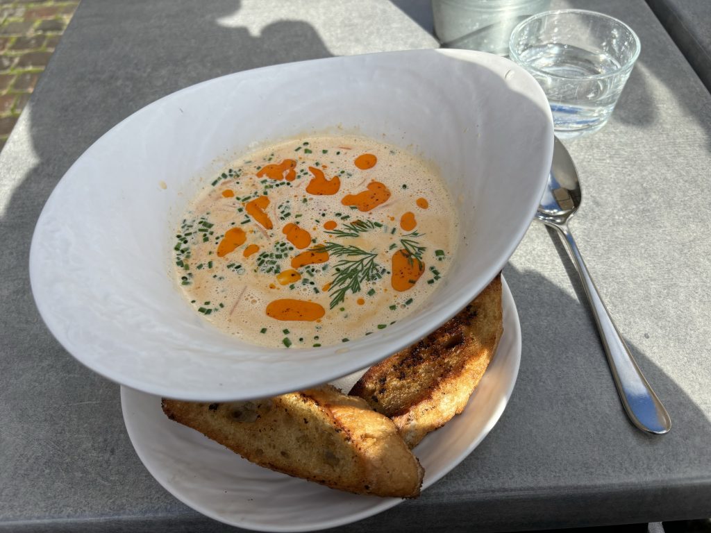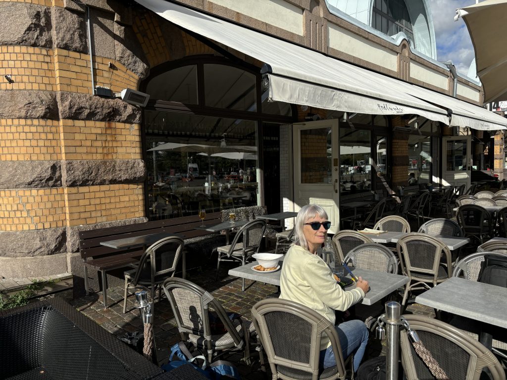 Walking up Östra Hamngatan, we revisited Saluhallen, the ornate Market Hall, where we enjoyed a lunch in 2022 with Chris, after having run a half marathon in Gothenburg. It was remarkable, after cool clouds and drizzle, sitting outdoors in the last autumnal vestiges of sun, fending off insistent and dozy wasps.