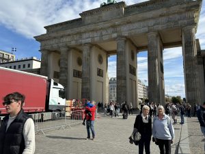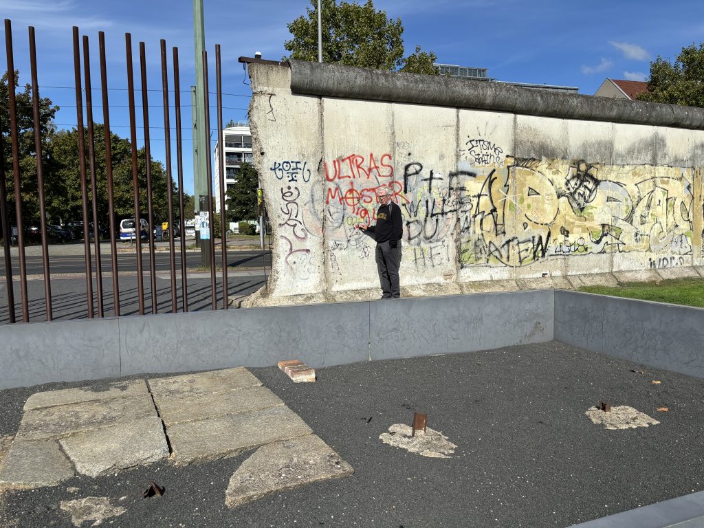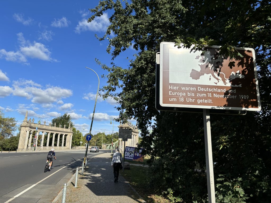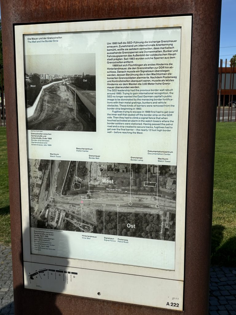 History hangs heavily on Berlin. The memories and consequences of the terrible division between the West and East linger large even today. Katharina drove us to the Bernauer Strasse Memorial – a site extending along the former border strip. One must quietly reflect on those days in August 1961 when soldiers and workmen began the task of dividing the city with, at first, barbed wire, separating families, and homes and workplaces. The pavements bordering the former ‘Death Strip’ are marked with the name and year of each of the more than 140 killings by GDR border guards. A sobering experience.