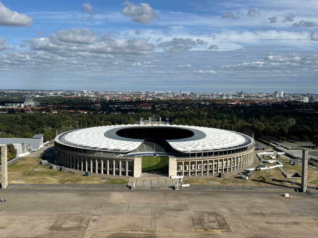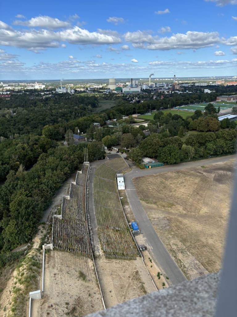 Next stop on this fascinating tour was at the Olympic Bell Tower, out West, bordering on the vast forest of Grunewald. The 77m heigh tower provides an exhilarating view, reaching from Alexander Platz in the east to Potsdam in the west. At its foot is the 1936 Olympic Stadium, built to impress the world with Nazi power.