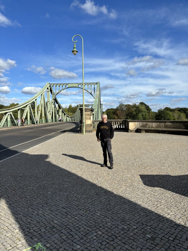 Not over yet, we had one more historic visit – the ‘Bridge of Spies’ – Glienicke Bridge, by Potsdam. The bridge spans between East Germany and West Berlin, and was under Soviet control, only used by allied military personnel and diplomats. A dreary, threatening place, it was several times used to exchange captured spies, as depicted in the Tom Hanks movie, Bridge of Spies. Today, road traffic was lively, the boats were cheery and the mock-Tudor castle on the opposite bank, in the sunshine, looked lovely!