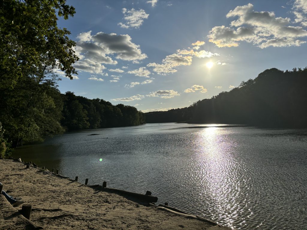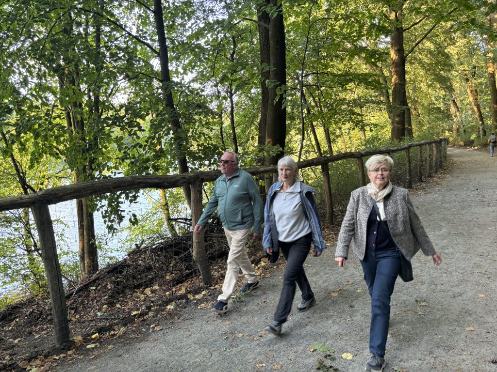 Time for the obligatory (and very welcome!) coffee and chocolate cake at Katharina’s and Hanjo’s house. Peter wasn’t certain until Hanjo opened the front door – but, yes, we HAD met before. Very briefly, in a past world. Strengthened by cake, we took a refreshing walk through Grunewald, enchanted by the fresh air of the approaching autumn, the interlinked lakes and the reclining sun.