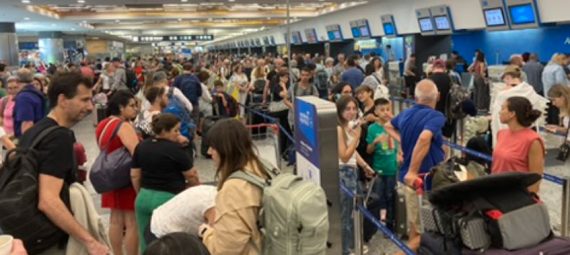 Our first departure gate changed to a second one. Then, that was changed to a third one. Nearly two hundred passengers in a mass migration through the airport. Over an hour later, boarding started, a packed, heaving plane, sweltering in the Buenos Aires heat. “Sorry – we need to change a tyre” – it was announced – “it will only take an additional 15-20 minutes”.