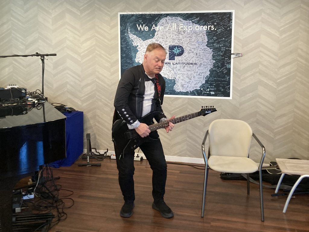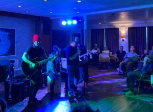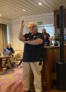 Two guests were each encouraged to perform a song they had written about the trip. One who had brought his own guitar, the other who had written a sea shanty, where the audience obliged by joining in the chorus. Nothing could top that!