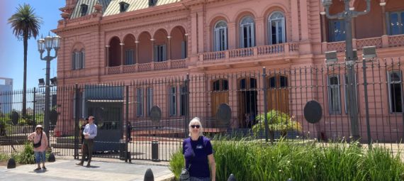 It was a lovely sunny, very warm day. We strolled up to the Casa Rosada, with the famous balcony where Evita Peron received the adulation of the crowds. The area was much improved, as when we last were here, it was covered in worksite hoardings. The area in front is now beautifully pedestrianised with lush green grass, statues and fountains.