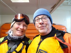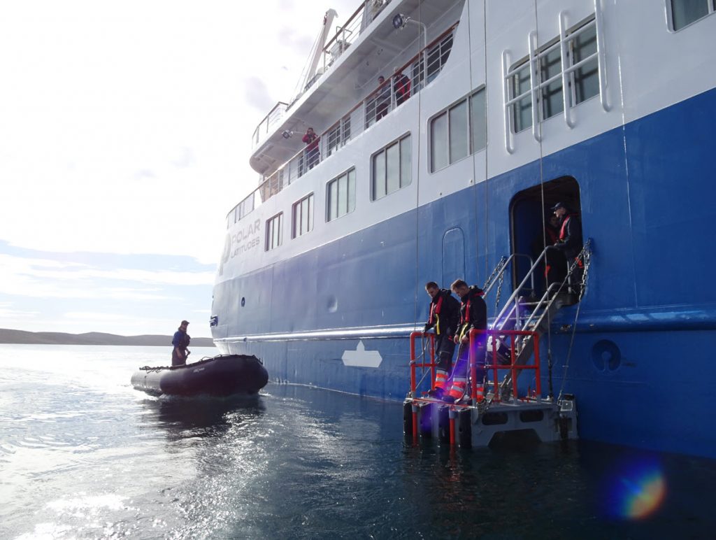 One passenger looked green with seasickness and was returned to the ship. We had to make a second approach to dock with the ship after the first failed due to the two metre swell. Two more passengers also bailed out, as it was very wet and cold.