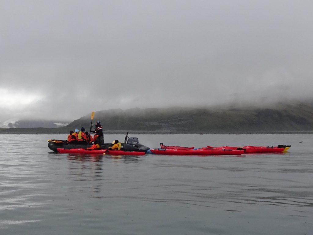 The afternoon saw us kayaking in the Bay of Isles. We were glad we were equipped with dry suits, as our outer gear from the morning’s Zodiac cruise was still very wet. In fact, Peter bought some Gore-Tex gloves from the ship’s shop, which will also be great for skiing, even if they don’t prove their worth on this voyage.