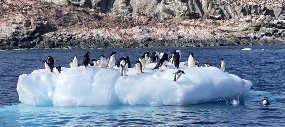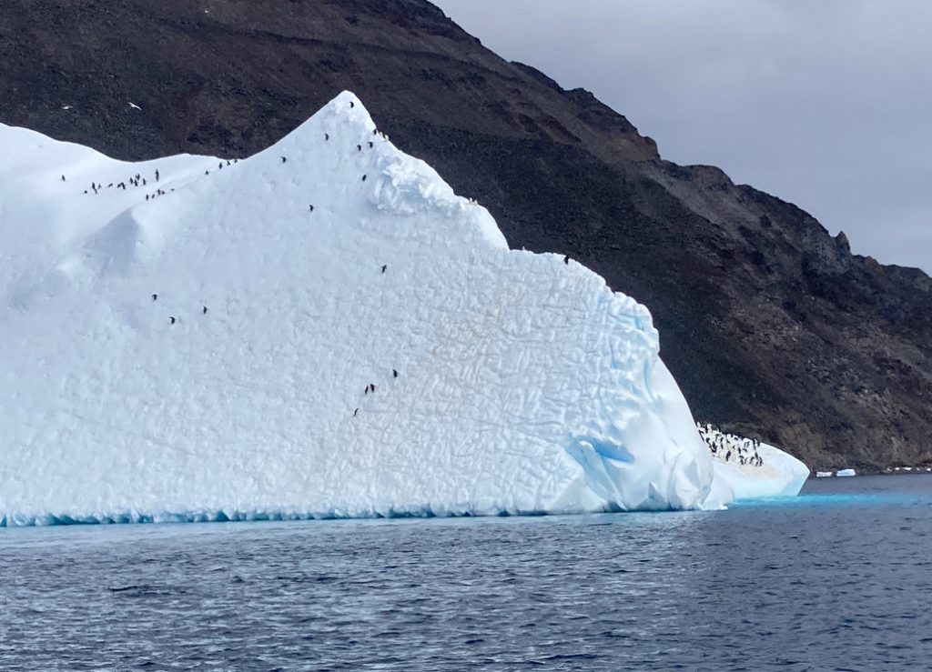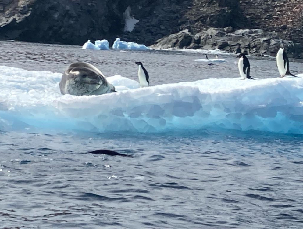 It was a delight observing the penguins jumping out of the water onto the pitching iceberg side and hopping and diving back into the sea again.