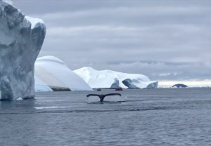 Not long out on our zodiac cruise, we enjoyed a wonderful display of whale play. A group of, what must be more than fifteen whales, entertained us for more than five minutes, splashing around and displaying their flukes and flippers.
