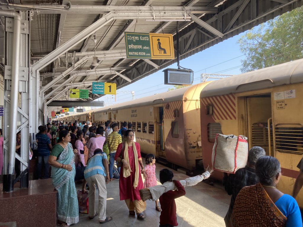 In the short walk to the station, we were grateful that the sun had not yet become all powerful. Our train to the big junction Hubballi (aka Hubli), was only 1/2 hour late departing and 1 1/2 late, arriving at lunchtime. Not a problem for us as we had taken the earlier train to ensure we didn’t miss our connection, which meant we had nearly 10 hours to wait.
