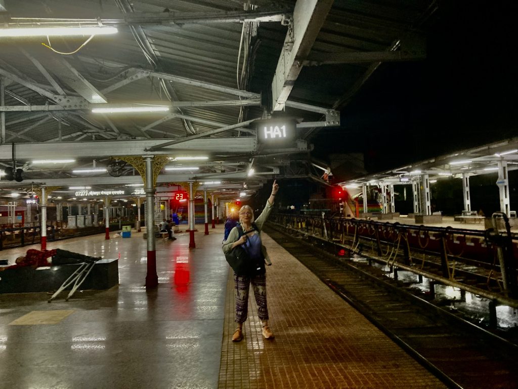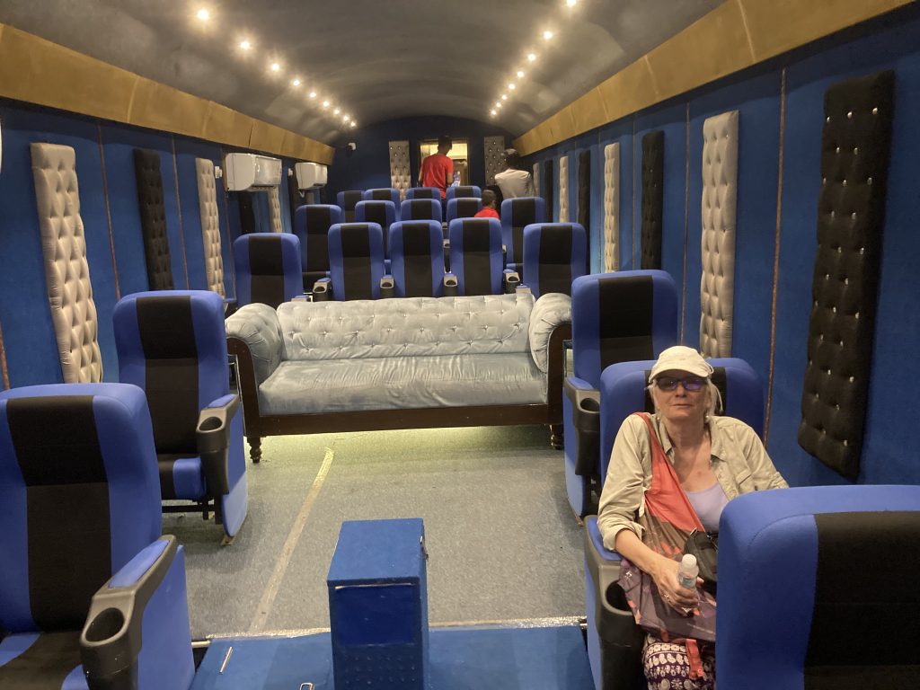 We slept in bits, as it was a bit of a ‘bone shaker’, which didn’t do Lynne’s sore hip any good, but we woke up in a good mood, eager to face the day’s adventures. At one point we seemed to be running 3 hours late but arrived unexpectedly only 2.5 hours behind schedule. This was the terminus, so we took our time getting off.