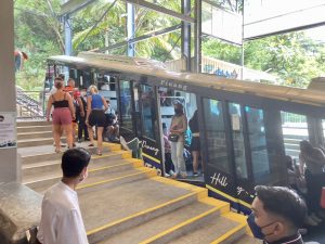 We left relatively early to catch the funicular mountain train to Penang Hills, and managed to get ahead of the queues. We bought a one-way ticket to the top, planning to walk down all the way, to the Botanical Gardens. Last time we were on a funicular was in Tignes in February. Here it was much warmer and greener than in the snow.