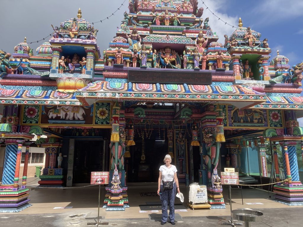 On a less hazy day, the views would no doubt be really spectacular, but at least there were breaks in the clouds and mist when we could see George Town and Penang! We noticed how much more well- tendered the Hindu temple was here at the top. We enjoyed a coffee in a magnificent restaurant, high up, but at a steep price.