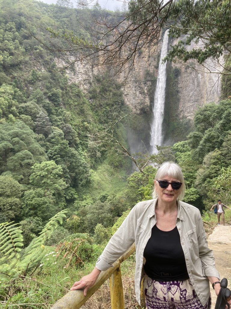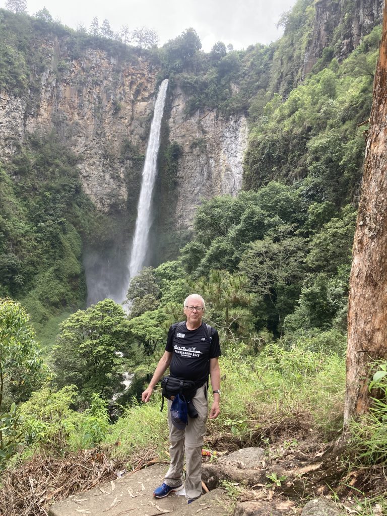 Finally we reached our next stop, the Sipiso-piso waterfall, with a 120m drop. The place was mobbed. We wandered around at the top, with loud music playing and a distant view of Lake Tabo, partly obscured by clouds.