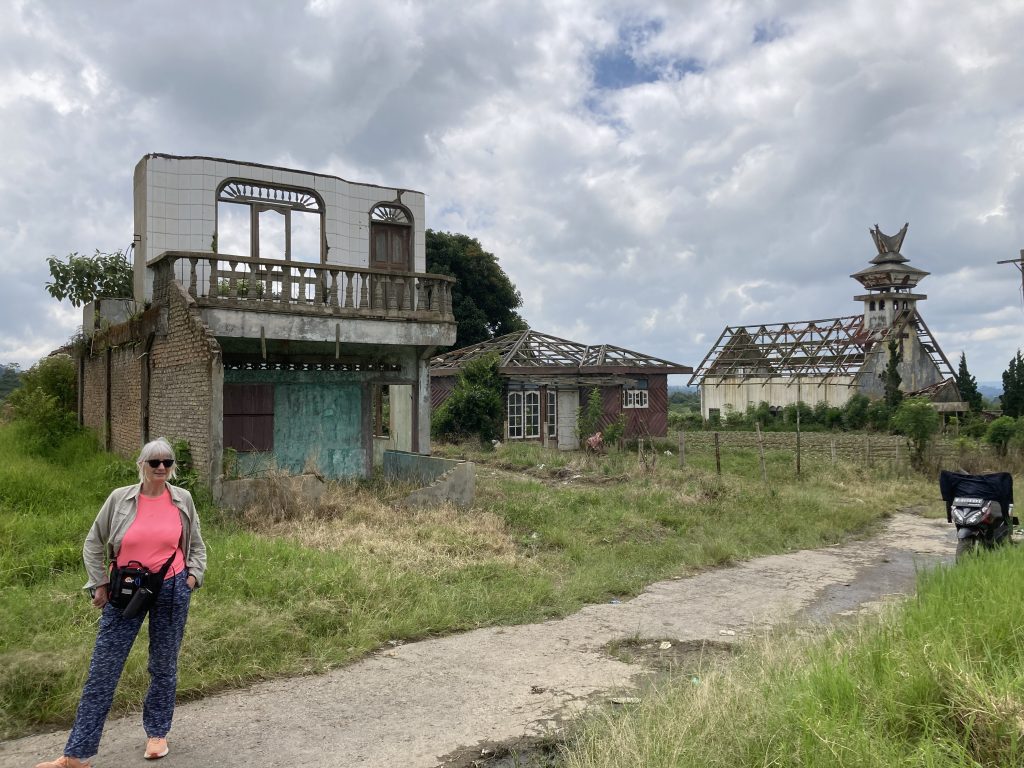 We stopped at the abandoned and destroyed village near the Sinabuang volcano, and a restaurant where we chose to skip lunch – after all we had all that fruit from the market! The restaurant had lovely views across the paddy fields, but was not clean and the loos were a tin shack across the road!