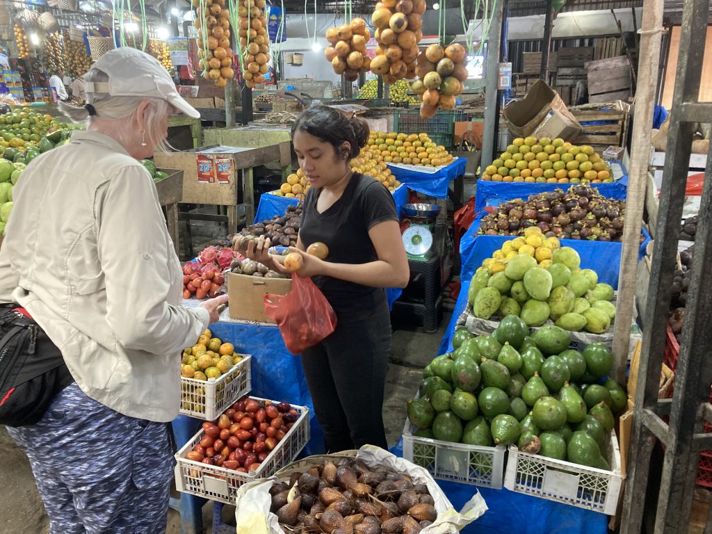 Berastagi is famous for its fruit market which we enjoyed, stocking up on exotic local fruits. Our drive took us past much arable land, with vegetables, fruit and coffee trees.