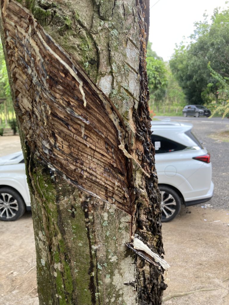 We stopped a couple of times to look at rubber being collected from the rubber trees and look at palm oil trees. We drove through miles of plantations. Both the rubber and palm oil trees were introduced into Indonesia by the Dutch.
