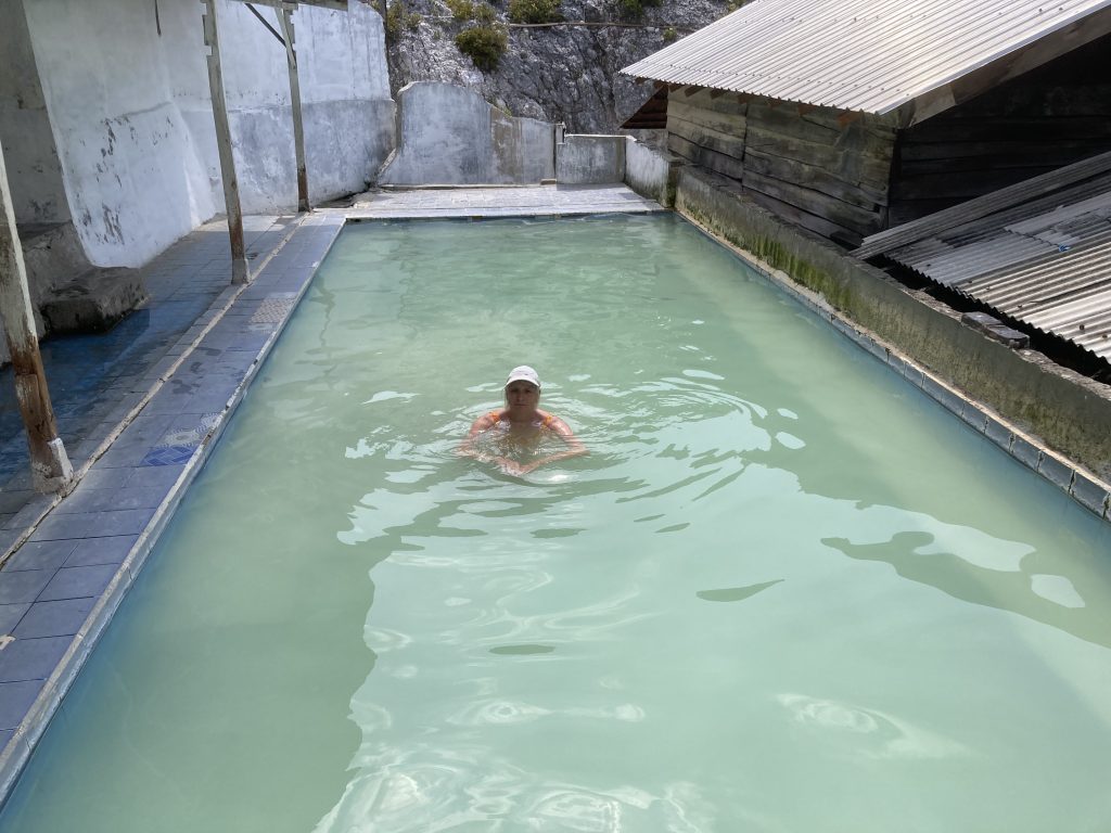 We drove across a new bridge to the mainland to the Observatory Tower, which is being rebuilt, so had to retrace our route. We instead chose to go to the hot sulphur springs, which were very hot and slightly unsavoury, but very cheap and we had the ladies’ pool to ourselves.