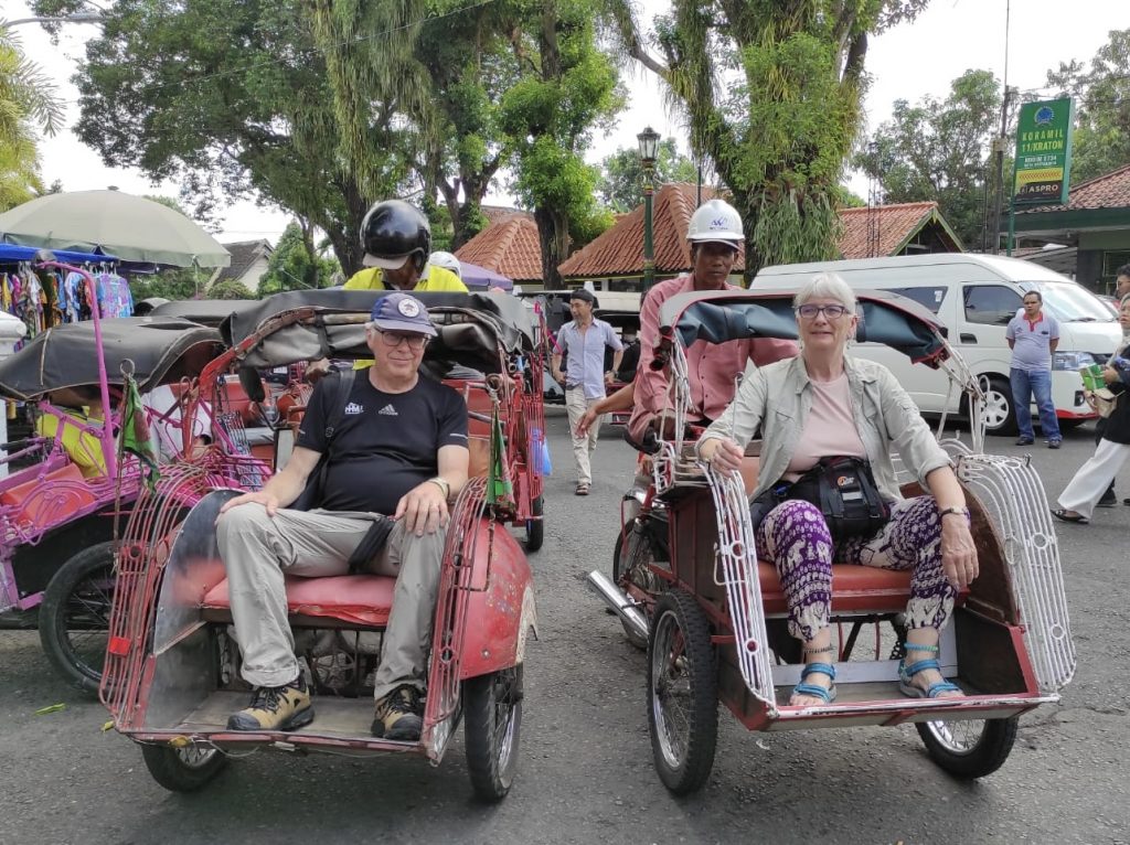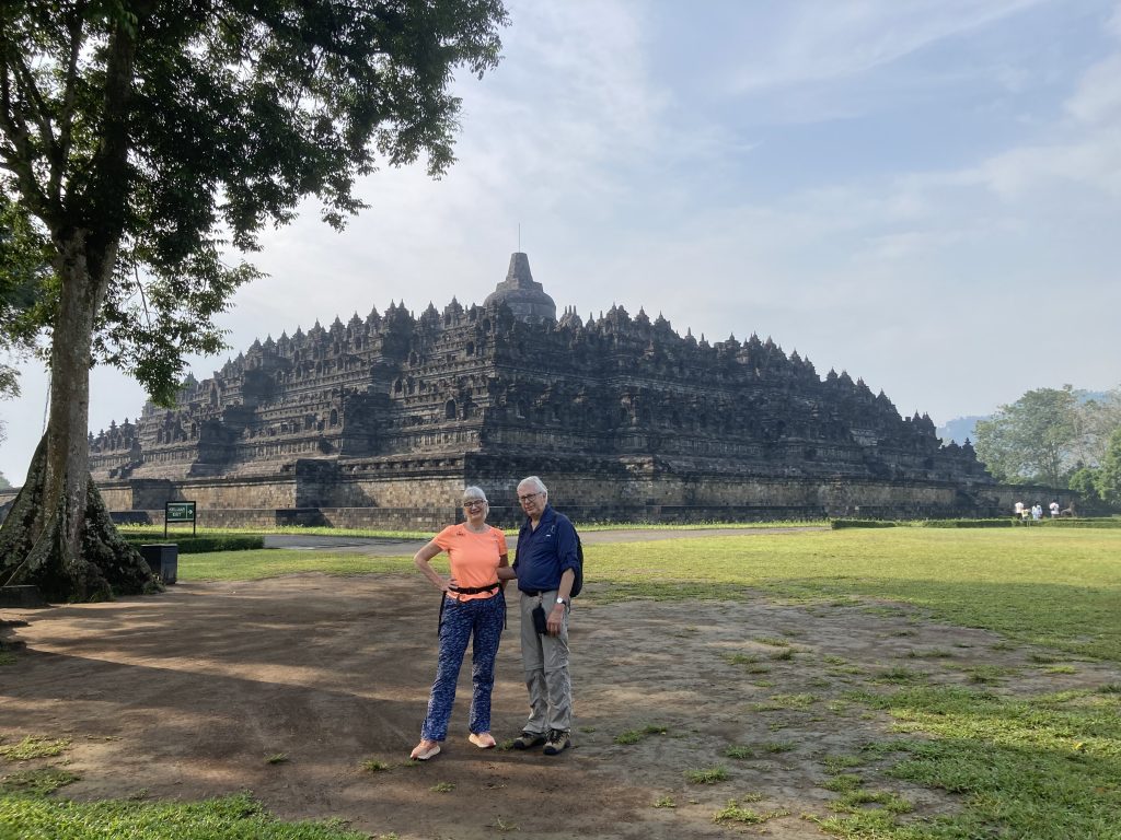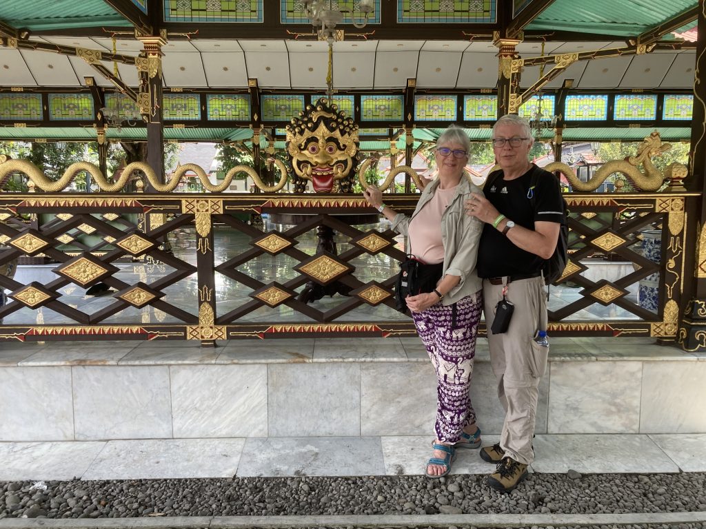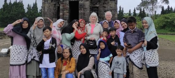 Next morning we visited the Hindu temples at Prambanan. It was Saturday and the site was busy. We cannot count the number of children, parents and teachers who clamoured for photos with us. Lynne was keen to respond to the shy giggling girls, in their hijabs, offering to pose with them to boost their confidence.